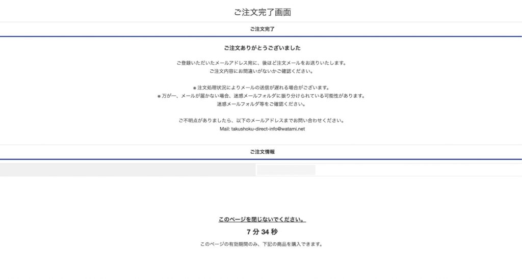 注文内容に問題がなければご注文完了へボタンを押して注文を完了します。